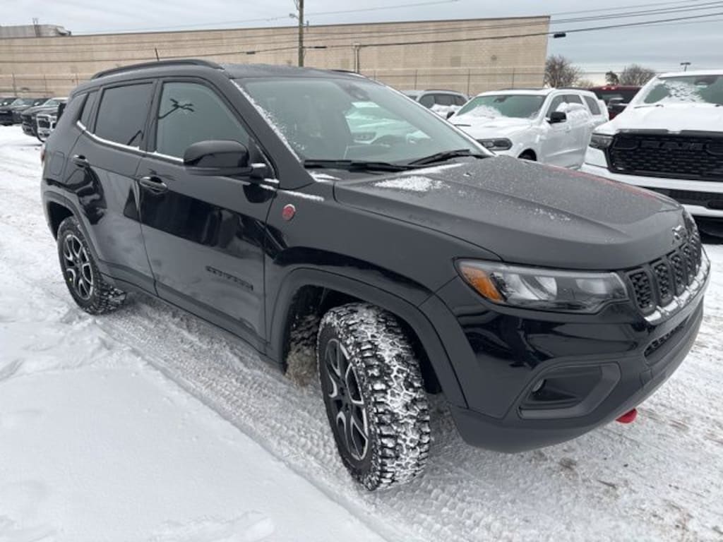 Clean CARFAX. Golling Chrysler Dodge Jeep Ram of Roseville is excited to offer this 2026 Jeep Compass Trailhawk in diamond black crystal pearlcoat with Ruby Red/Black Cloth. This Compass is very well equipped with Quick Order Package 29E, 10.1" Touchscreen Display, 4G LTE Wi-Fi Hot Spot, 6 Speakers, Air Conditioning, Alloy wheels, AM/FM radio: SiriusXM, Auto High-beam Headlights, Automatic temperature control, Delay-off headlights, Front Bucket Seats, Front dual zone A/C, Front fog lights, Fully automatic headlights, Heated front seats, Heated steering wheel, Panic alarm, ParkView Rear Back-Up Camera, Passenger door bin, Power driver seat, Power windows, Premium audio system: UConnect 5, Radio: Uconnect 5 with 10.1" Display, Rain sensing wipers, Rear window defroster, Rear window wiper, Remote keyless entry, Security system, SiriusXM Radio Service, Speed control, Split folding rear seat, Steering wheel mounted audio controls, Variably intermittent wipers, and Wheels: 17" x 6.5" Painted Black Aluminum.