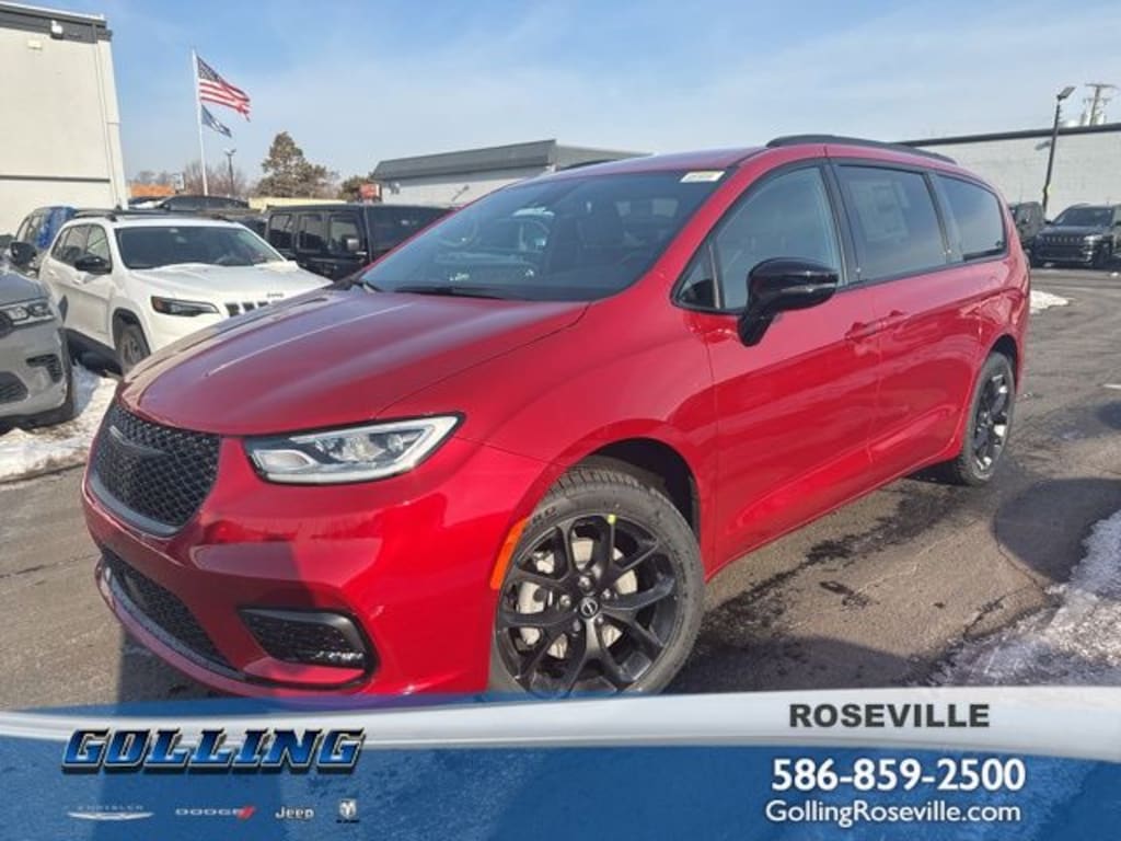 Golling Chrysler Dodge Jeep Ram of Roseville is pumped up to offer this 2026 Chrysler Pacifica Select in Red Hot Pearlcoat with Black Artificial Leather. This Pacifica is very well equipped with.