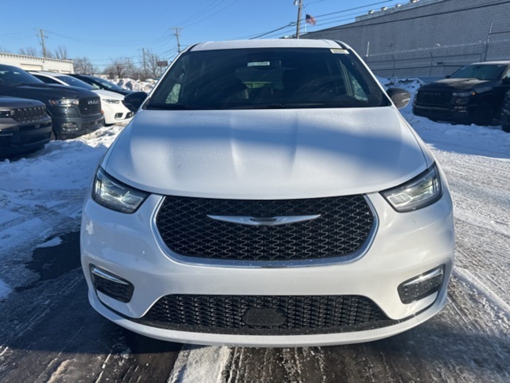 Golling Chrysler Dodge Jeep Ram of Roseville is pumped up to offer this 2026 Chrysler Pacifica Select in Bright White Clearcoat with Black Artificial Leather. This Pacifica is very well equipped with.