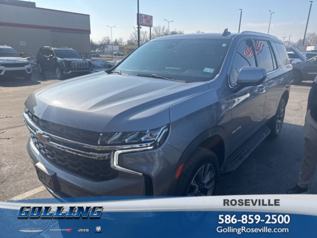 Recent Arrival! Golling Chrysler Dodge Jeep Ram of Roseville is very proud to offer this 2021 Chevrolet Tahoe LS in Satin Steel Metallic with Jet Black Cloth. This Tahoe is very well equipped with ** DEALER MAINTAINED**, **LOCAL TRADE**, and **ACCIDENT FREE CARFAX**Driver Alert Package (Front & Rear Park Assist, Lane Change Alert w/Side Blind Zone Alert, Lane Keep Assist w/Lane Departure Warning, and Rear Cross Traffic Alert), License Plate Front Mounting Package, and Preferred Equipment Group 1LS (1st & 2nd Row Color-Keyed Carpeted Floor Mats, 2 USB Data Ports, Color-Keyed Carpeting Floor Covering, Driver & Front Outboard Passenger Airbags, Floor Console w/Storage Area, HD Radio, Infotainment Display, Leather-Wrapped Steering Wheel, LED Daytime Running Lamps, Remote Start, and SiriusXM Radio w/360L)