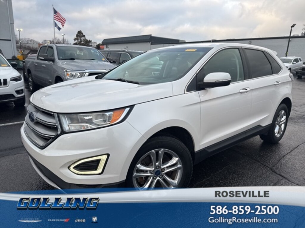 Golling Chrysler Dodge Jeep Ram of Roseville is excited to offer this 2015 Ford Edge SEL in White Platinum Clearcoat Metallic with Ebony Leather. This Edge is very well equipped with ** DEALER MAINTAINED**, **LOCAL TRADE**, **ACCIDENT FREE CARFAX**, **ONE OWNER**, and **LOW MILES**Class II Trailer Tow Package w/Trailer Sway Control, Equipment Group 201A (Leather-Trimmed Heated Bucket Seats, Premium 9 Speaker Audio, and SYNC w/MyFord Touch), Technology Package (BLIS Blind Spot Information System, Power Converter 110V Outlet, Radio: AM/FM Stereo w/Single CD/Navigation, and Remote Start System), and Utility Package (Hands-Free Liftgate, Perimeter Alarm, and Universal Garage Door Opener)