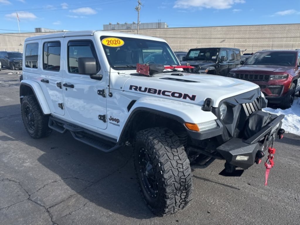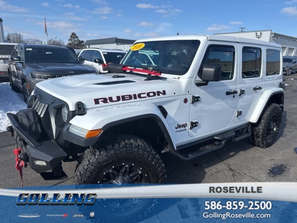 Recent Arrival! Clean CARFAX. Golling Chrysler Dodge Jeep Ram of Roseville is pumped up to offer this 2020 Jeep Wrangler Unlimited Rubicon in Bright White Clearcoat with Black Leather. This Wrangler is very well equipped with ** DEALER MAINTAINED**, **LOCAL TRADE**, **ACCIDENT FREE CARFAX**, **LOW MILES**, **CERTIFIED PRE-OWNED**, and Leather8.4" Radio & Premium Audio Group (1-Year SiriusXM Guardian Trial, 4G LTE Wi-Fi Hot Spot, 5-Year SiriusXM Traffic Service, 5-Year SiriusXM Travel Link Service, 8.4" Touchscreen Display, Alpine Premium Audio System, Auto-Dimming Rear-View Mirror, Emergency/Assistance Call, For Details, Visit DriveUconnect.com, GPS Navigation, HD Radio, Radio: Uconnect 4C Nav w/8.4" Display, SiriusXM Traffic Plus, and SiriusXM Travel Link), Advanced Safety Group (Advanced Brake Assist and Full Speed Forward Collision Warning Plus), Cold Weather Group (Heated Front Seats and Heated Steering Wheel), LED Lighting Group (Daytime Running Lamps LED Accents, Front LED Fog Lamps, LED Reflector Headlamps, and LED Taillamps), Quick Order Package 22R, Safety Group (Blind Spot & Cross Path Detection and ParkSense Rear Park Assist System), Steel Bumper Group (Steel Front Bumper and Steel Rear Bumper), and Trailer Tow & HD Electrical Group (240 Amp Alternator, 7 & 4 Pin Wiring Harness, 700 Amp Maintenance Free Battery, Auxiliary Switches, and Class II Receiver Hitch)