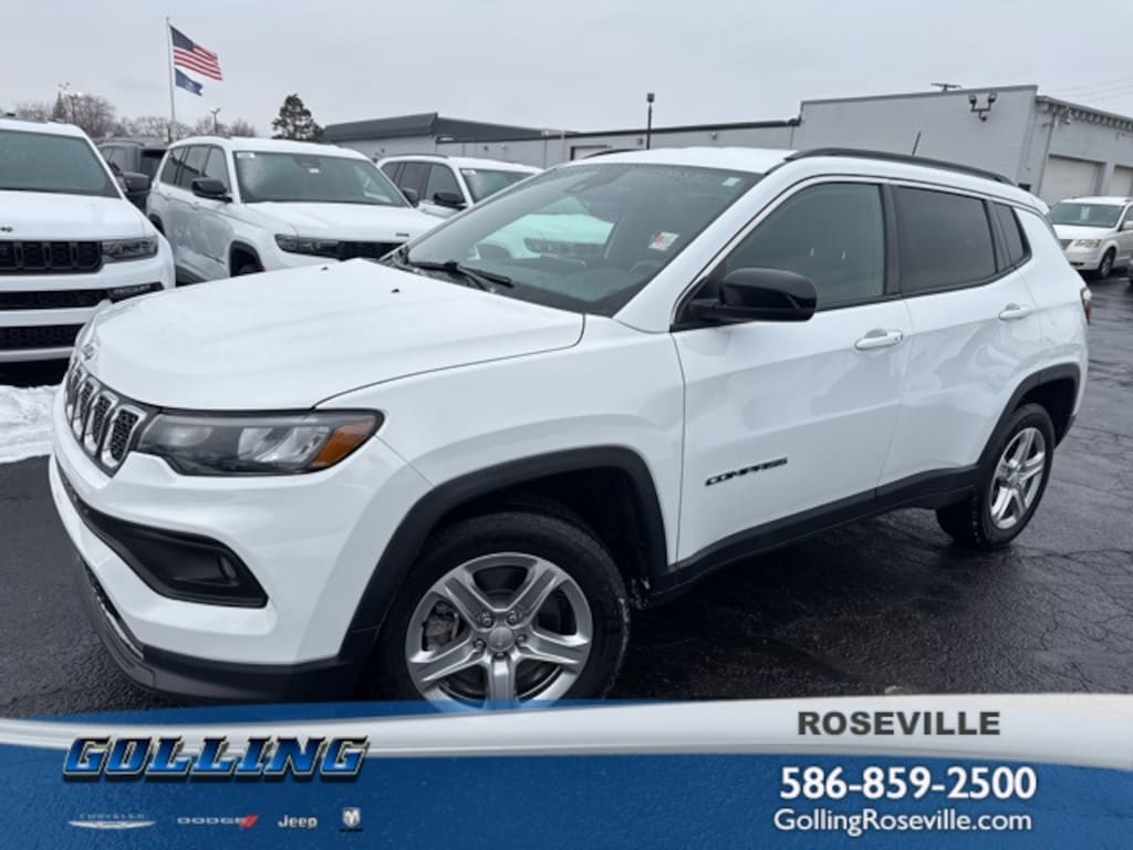 Golling Chrysler Dodge Jeep Ram of Roseville is excited to offer this 2023 Jeep Compass Latitude in Bright White Clearcoat with Black Cloth. This Compass is very well equipped with ** DEALER MAINTAINED** and **LOCAL TRADE**Quick Order Package 29J.