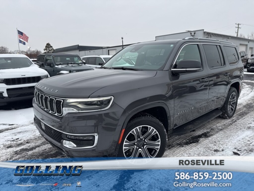 Golling Chrysler Dodge Jeep Ram of Roseville is very proud to offer this 2024 Jeep Wagoneer in Baltic Gray Metallic Clearcoat with Black Leather. This Wagoneer is very well equipped with ** DEALER MAINTAINED**, **LOCAL TRADE**, **ACCIDENT FREE CARFAX**, **ONE OWNER**, **LOW MILES**, and **CERTIFIED PRE-OWNED**Premium Group I (3 Panel Sunroof, Adjustable Roof Rail Crossbars, Cargo Cover, Reversible Carpet/Vinyl Cargo Mat, and Wheels: 20" x 9.0" Premium 2 Aluminum) and Quick Order Package 25E.